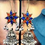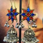 Afghan-Inspired Starburst Jhumka Earrings with Colorful Glass