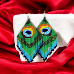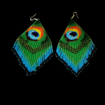 Discover the artistry in every bead with these breathtaking peacock feather inspired earrings. Handmade with exceptional attention to detail, these fringe earrings showcase a complex pattern that mirrors the natural beauty of a peacock’s eye. Using high-quality seed beads, our skilled artisans have created a durable yet remarkably lightweight accessory. The rich color palette of greens, blues, and warm tones ensures these earrings will complement a wide range of outfits, adding an exotic and luxurious touch to your style.