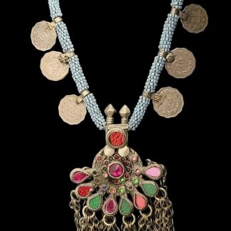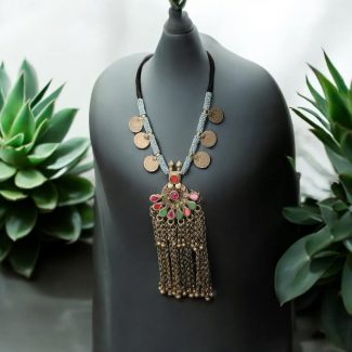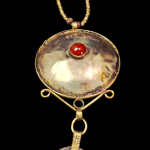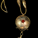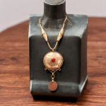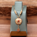 Artisanal Medallion Necklace with Red Stone and Coin Detail