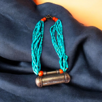* Description: Adorn yourself with this captivating necklace featuring multiple strands of vibrant turquoise beads. A striking sterling silver tubular pendant, accented with pops of red, forms the centerpiece of this unique, handcrafted piece, perfect for adding an artistic touch to any ensemble.