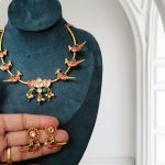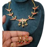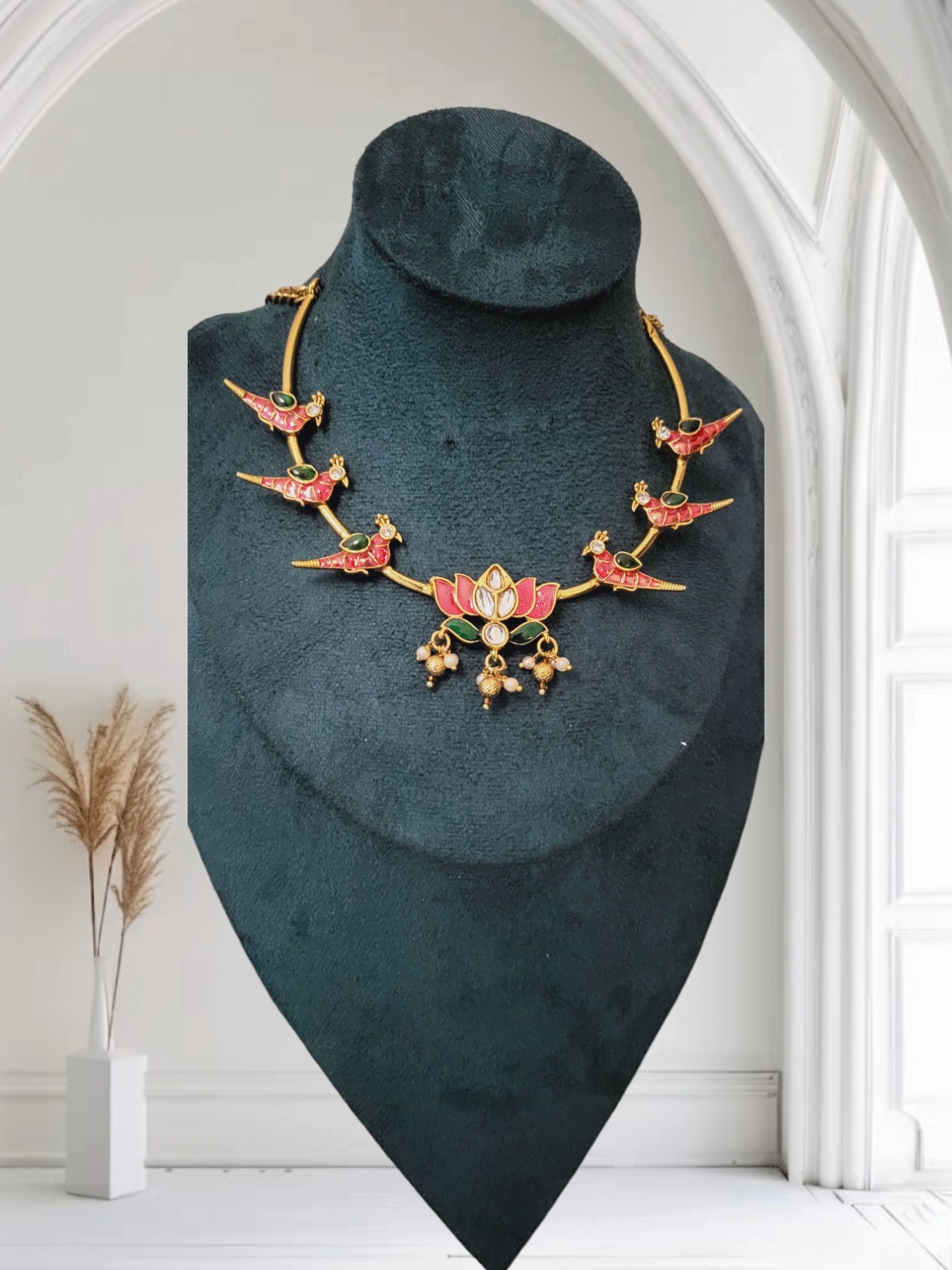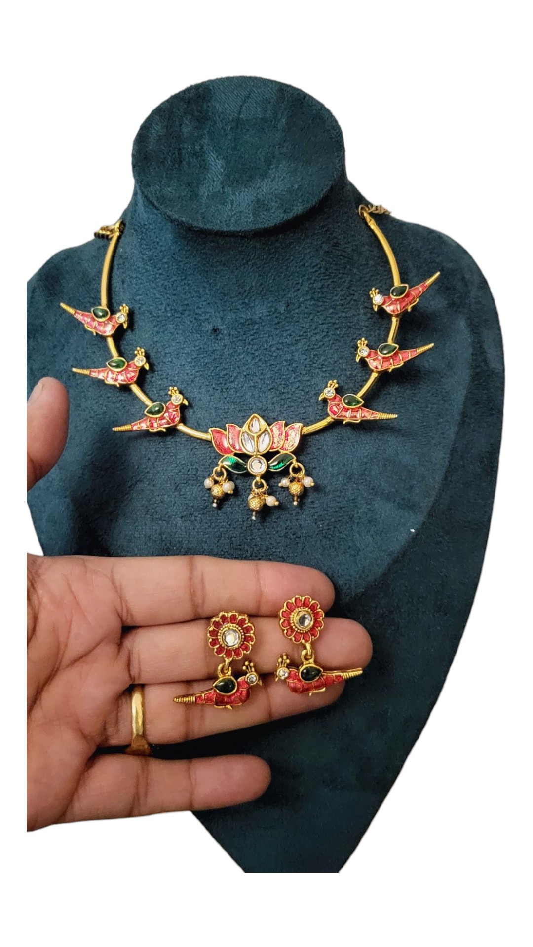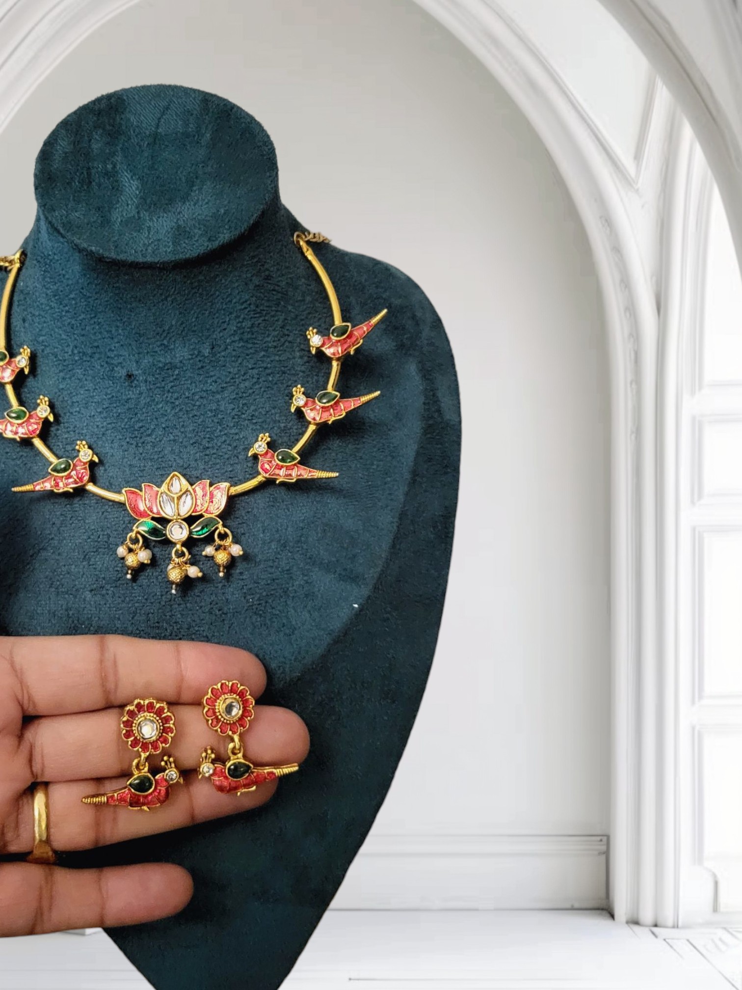 Kundan set. handmade bird necklace. decorated with crystal and beads