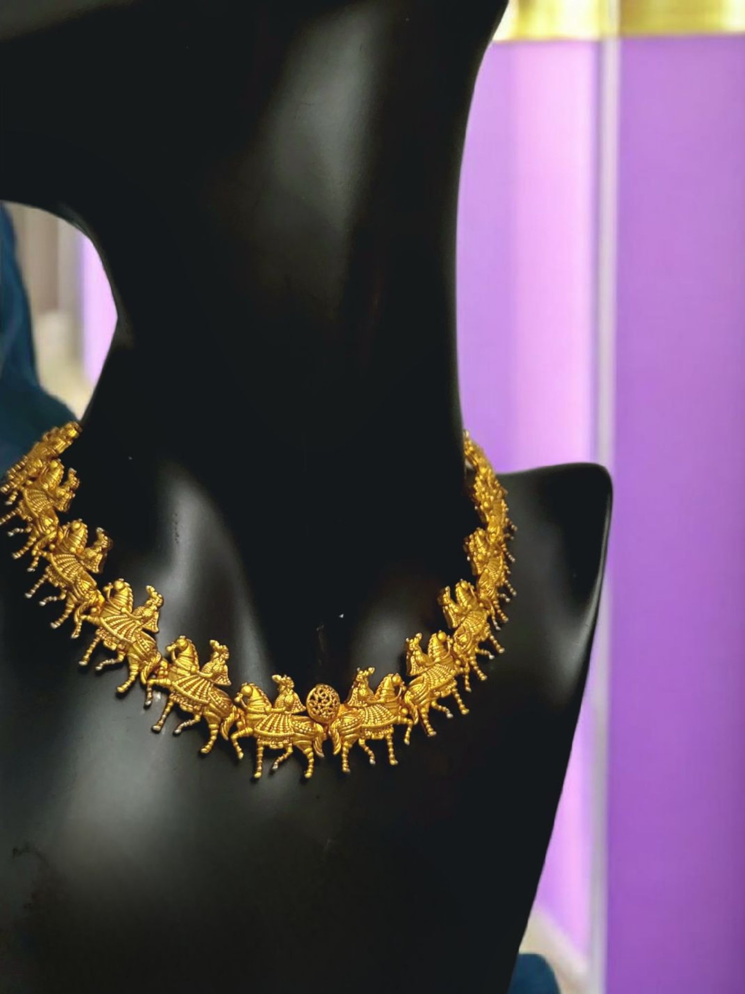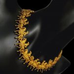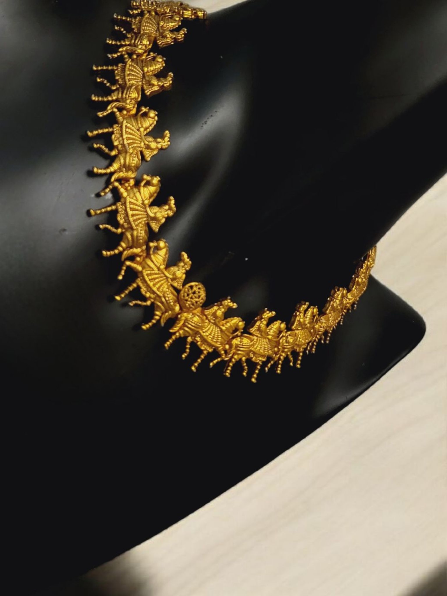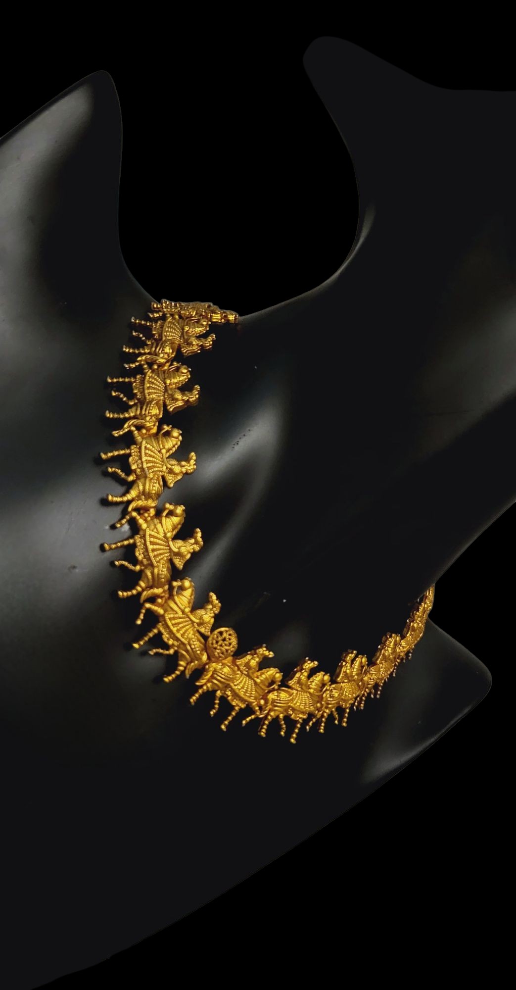 This exceptional, matte gold necklace features unique figural motifs that add character and elegance to it. Perfect for those who value original jewelry with a subtle, unobtrusive finish. It is perfect for both special occasions and as a sophisticated addition to everyday styling.