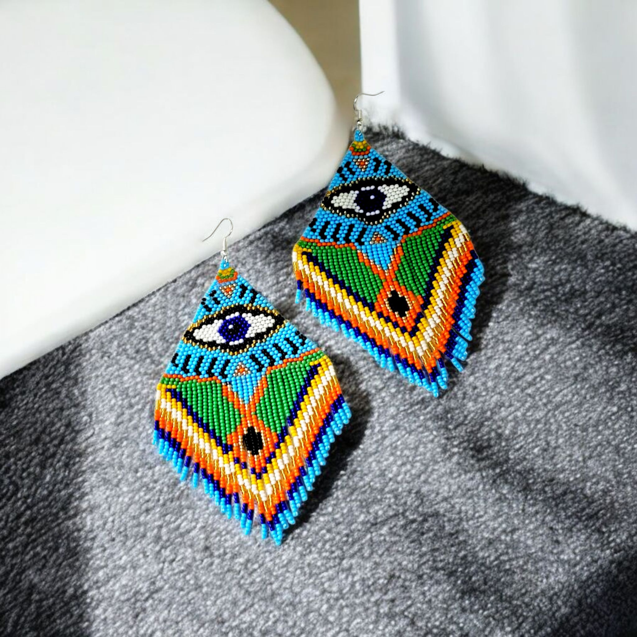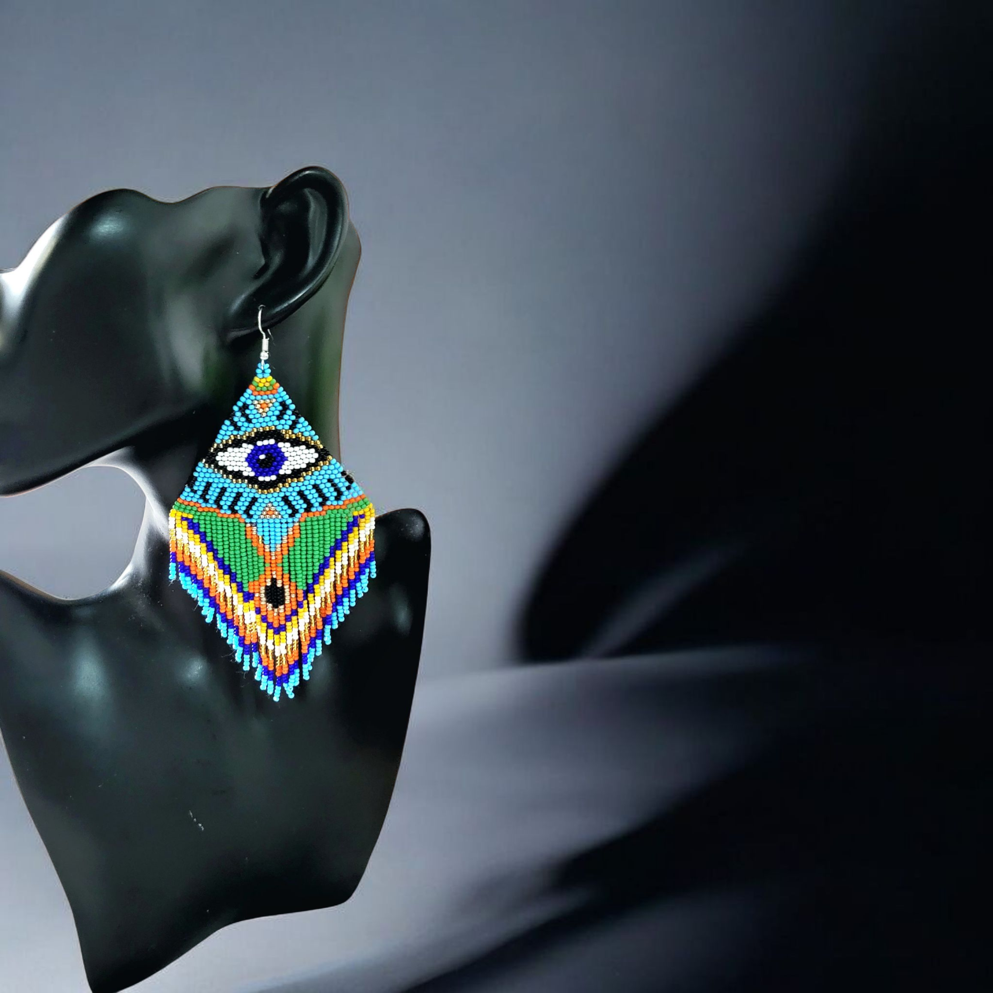 Mystical Evil Eye Beaded Fringe Earrings | Artisan Crafted