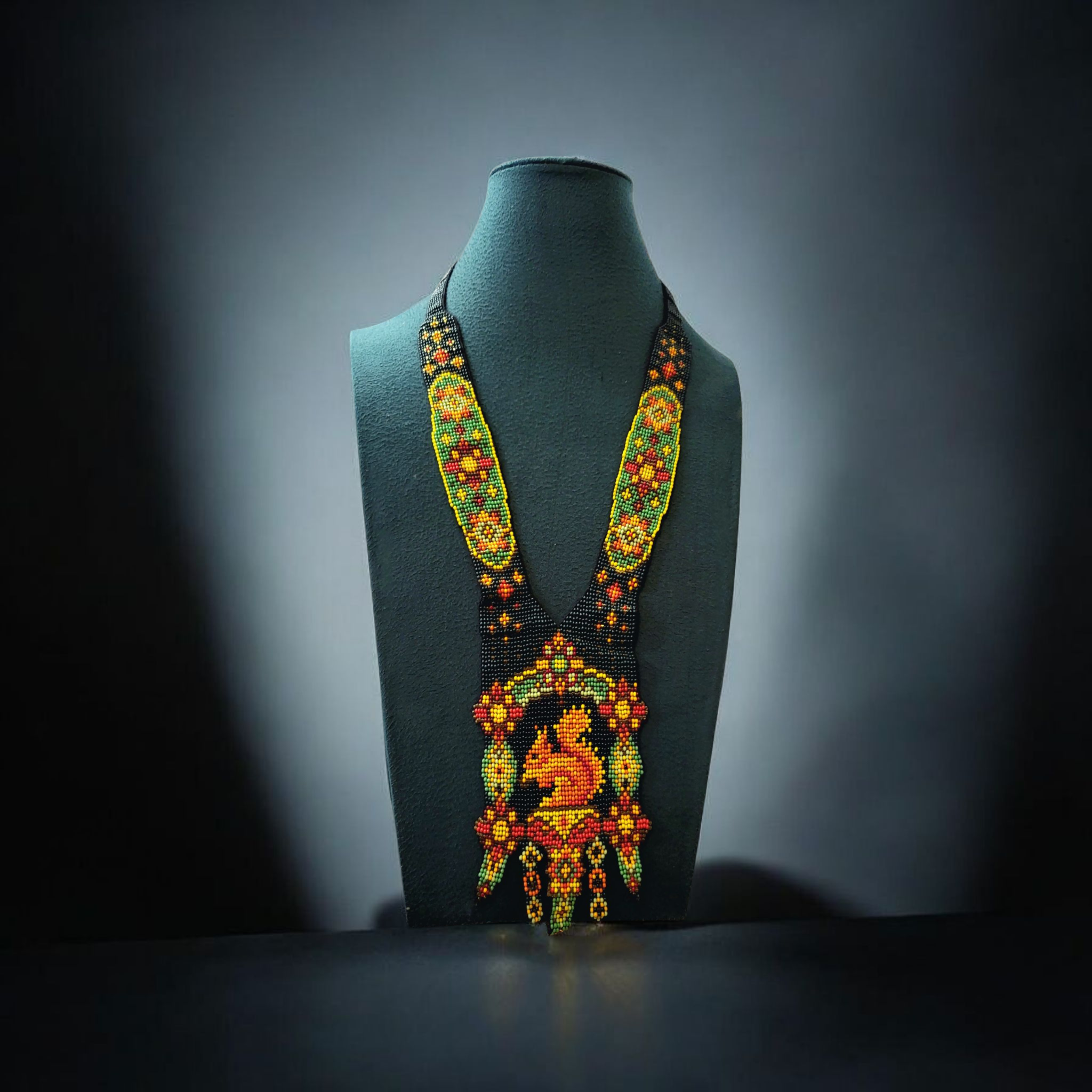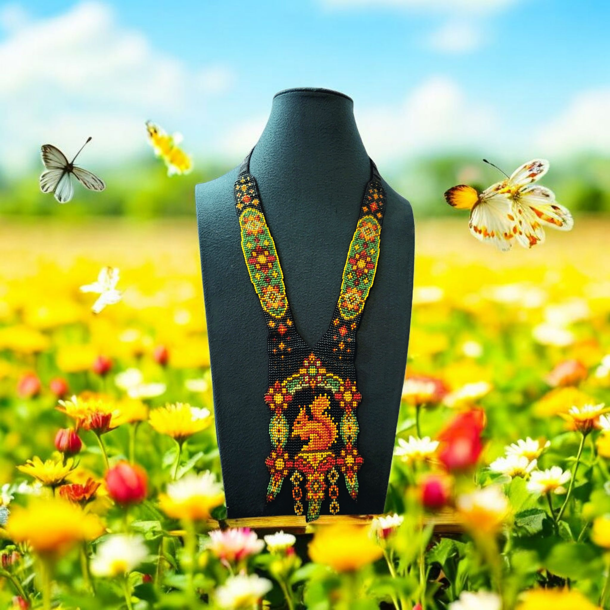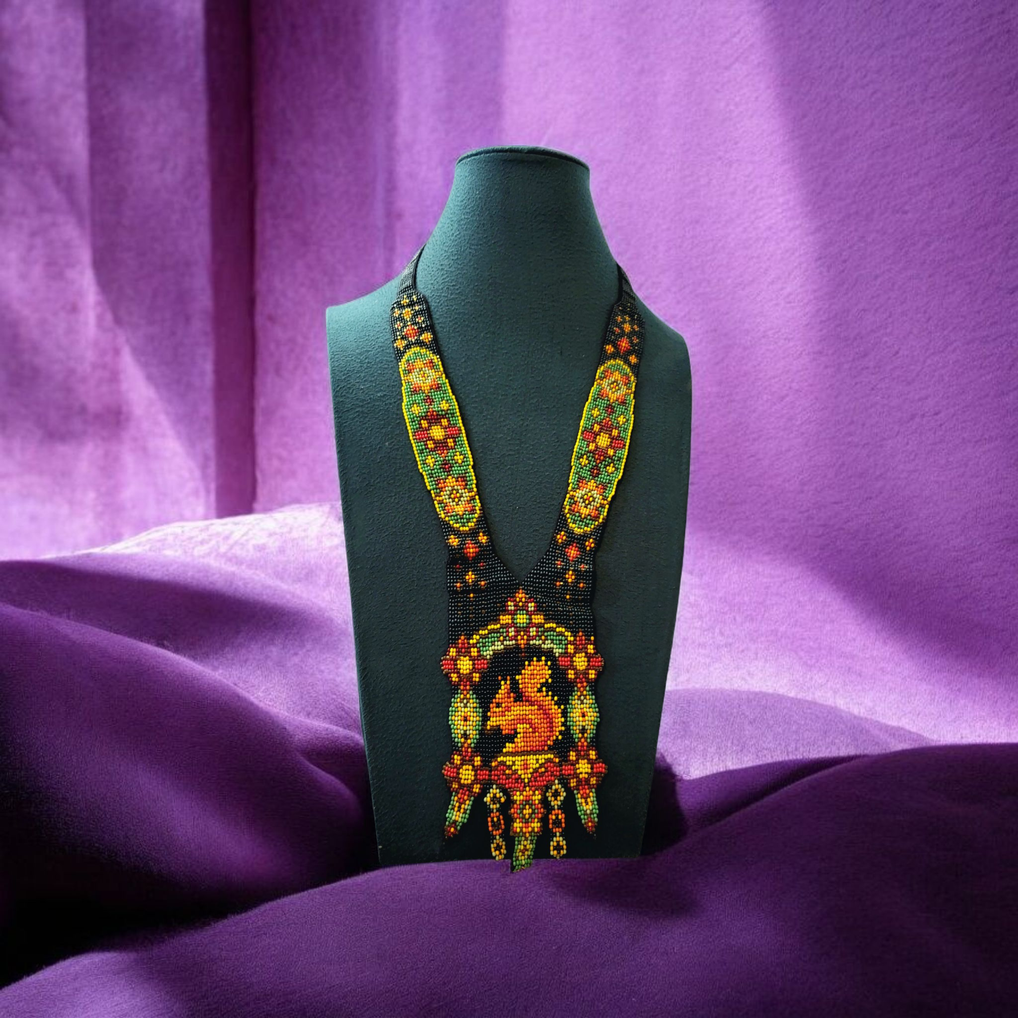 Discover a unique, handmade beaded necklace! This spectacular accessory in vivid colors with a central, artistic motif will add character to any styling. Perfect for lovers of original jewelry, it will emphasize your individual style and attract attention. Feel exceptional with this unique decoration!