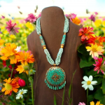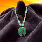 very Beautiful nepali boho beaded necklace with stone chips medallion.